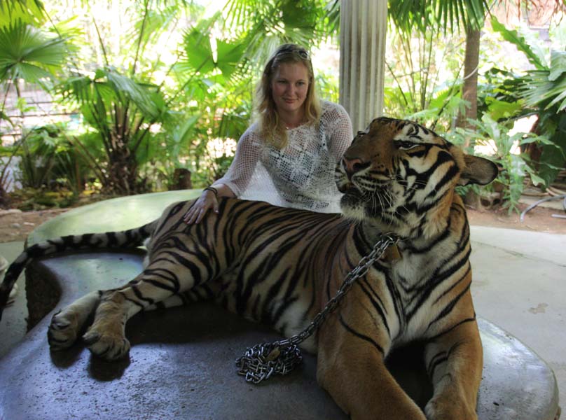 Mange har sendt mail å spurt om jeg faktisk klappet tiger i Thailand eller om jeg skrøt på meg. Jeg er da en kvinne med ærligheten i behold, så for å glede mange av mine lesere legger jeg ut bilde av meg og min skjønne sjelefrende 🙂 Lenken rundt halsen er btw ikke festet i noe, så var en smule nervøs.. 😛