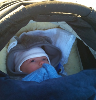 En stopp på butikken for å kjøpe vann og en boks appelsinjuice og så gå videre. Appelsinjuicen renner kjølig og frisk nedover halsen,den blir kaldere og kaldere for hvert sug, men rundt neste sving 100 meter borte kommer ikke mer ut av sugerøret! Juicen har rett og slett blitt til is! Jeg begynner å le, og ler hele veien hjem. Jeg føler meg lykkelig og tilfreds. Kulden gir meg roser i kinnene, og jeg elsker følelsen av frisk luft i lungene! Leo Nicolai sover ikke lenger, men smiler og prater i vognen. Jeg tenker på hvor ufatterlig høyt jeg elsker den lille klumpen i vogna!