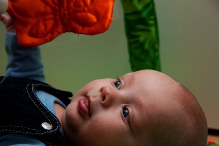 Mannen er på jobb, babyen sover i vugga si, og frk. husmor har bakt kake etter middagen hun lagde i ste. Livet leker, og jeg puster sakte ut mens jeg tenker for ente gang i dag hvor heldig jeg er! 😀 Legger ved et bilde av Leo som leker seg i babygummen tidligere i dag. Han har begynt å vise interesse for leker, og begynner så smått å gripe etter sommerfuglene på babygymmen mens han smiler i begeistring. Flinke gutten vår!