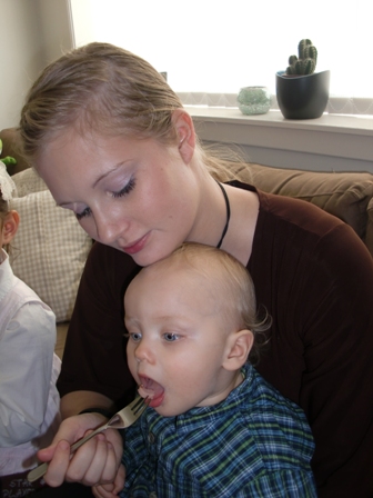 Koser oss med flaske før sengetid