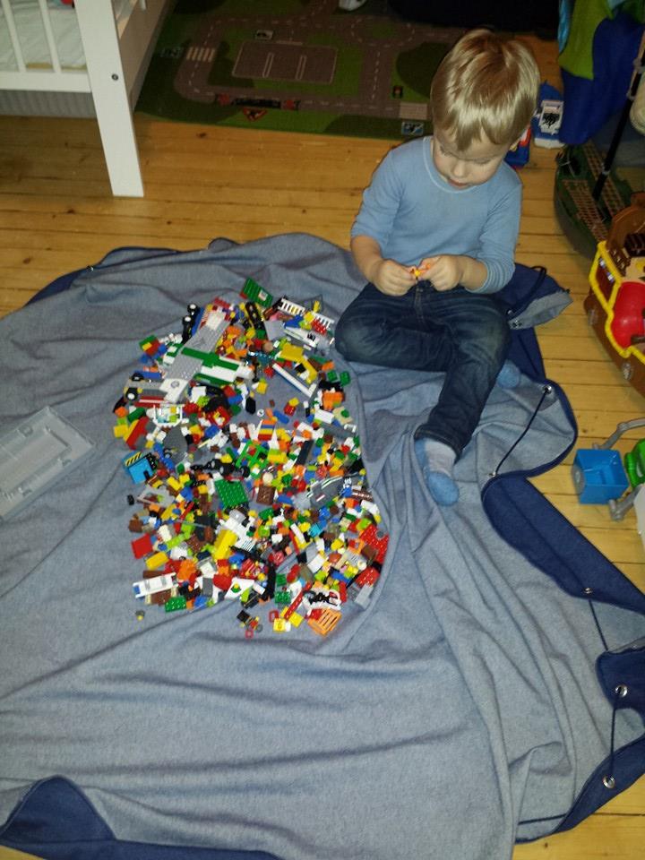 Leo ble veldig fornøyd med lego-teppet sitt!