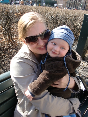 Vi begynte dagen rolig, og bestemte oss senere for å dra på trilletur i Karl Johans gate. Vi kjøpte oss is på Ben&Jerrys som har kommet dit, og isen deres er HIMMELSK! Så sitter vi ved spikersuppa og koser oss med 22 grader i skyggen, is, og en smilende og blid baby som følger med på ALT. Duene var visst spesiellt interessante. Så rusler vi oss bort til statuen av Wenche Foss (takk for alle gledene du har gitt til folket, må du hvile i fred etter et langt liv) og så gikk vi videre ned Karl Johan og så på alle menneskene. Så trillet vi til bilen når jeg ble sliten, og vi kjørte hjem til en MEGAvarm balkong. Jeg tuller ikke når jeg sier det må ha vært 30 grader i solveggen vår! Så sitter vi med buksa brettet opp til lårene, singleten brettet til oppunder brystene, og føttene på hagebordet. Fuglene synger, humlene surrer, og vi spiser herlig melon som bestemor har kuttet opp. Solbrillene på nesen og alt er bare velstand.